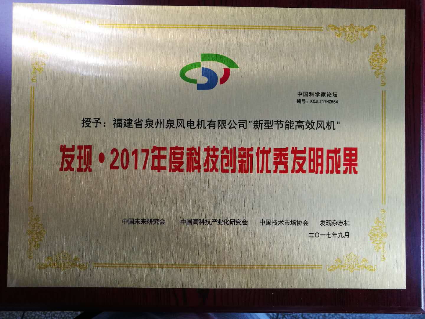 本司以新型節(jié)能高效風(fēng)機(jī)榮獲“發(fā)現(xiàn).2017全國科技創(chuàng)新優(yōu)秀成果獎”