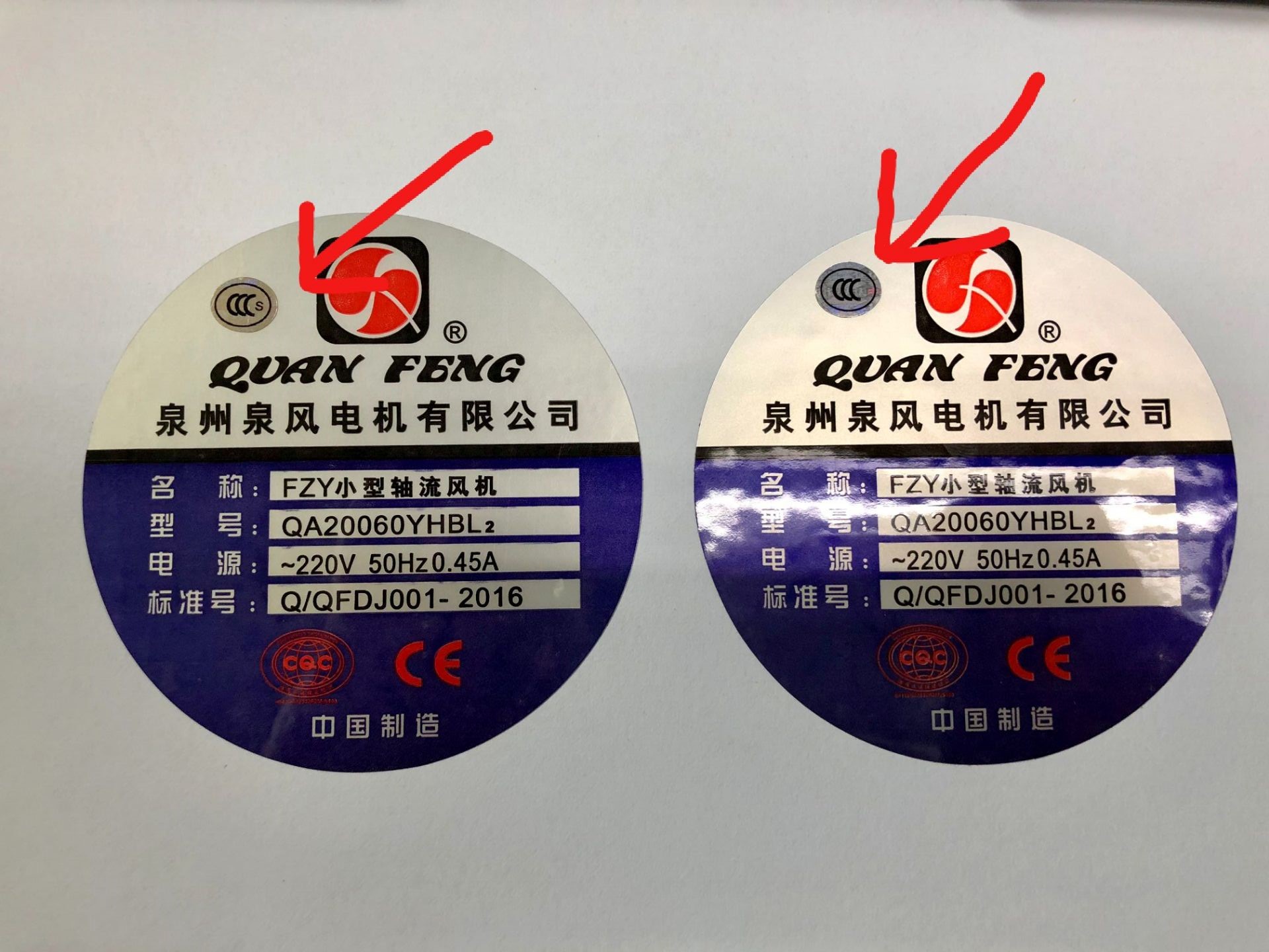 泉州泉風(fēng)電機(jī)所以系列產(chǎn)品,產(chǎn)品商標(biāo)上所貼CCC標(biāo)志,在一段時間內(nèi)會出現(xiàn) CCCs和CCC,兩種標(biāo)志。